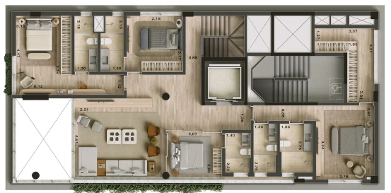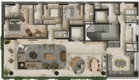 Implantado em torre única, o empreendimento privilegia a privacidade ao oferecer unidades amplas, com plantas generosas e circulação reduzida por pavimento, característica cada vez mais rara em regiões consolidadas. As tipologias contemplam apartamentos de alto padrão com metragens elevadas, além de unidades diferenciadas como duplex e cobertura triplex, todas concebidas com foco em integração de ambientes, iluminação natural abundante e possibilidade de personalização de layout. A proposta arquitetônica valoriza linhas sóbrias, materiais nobres e uma estética atemporal, dialogando com o entorno sofisticado da Oscar Freire.